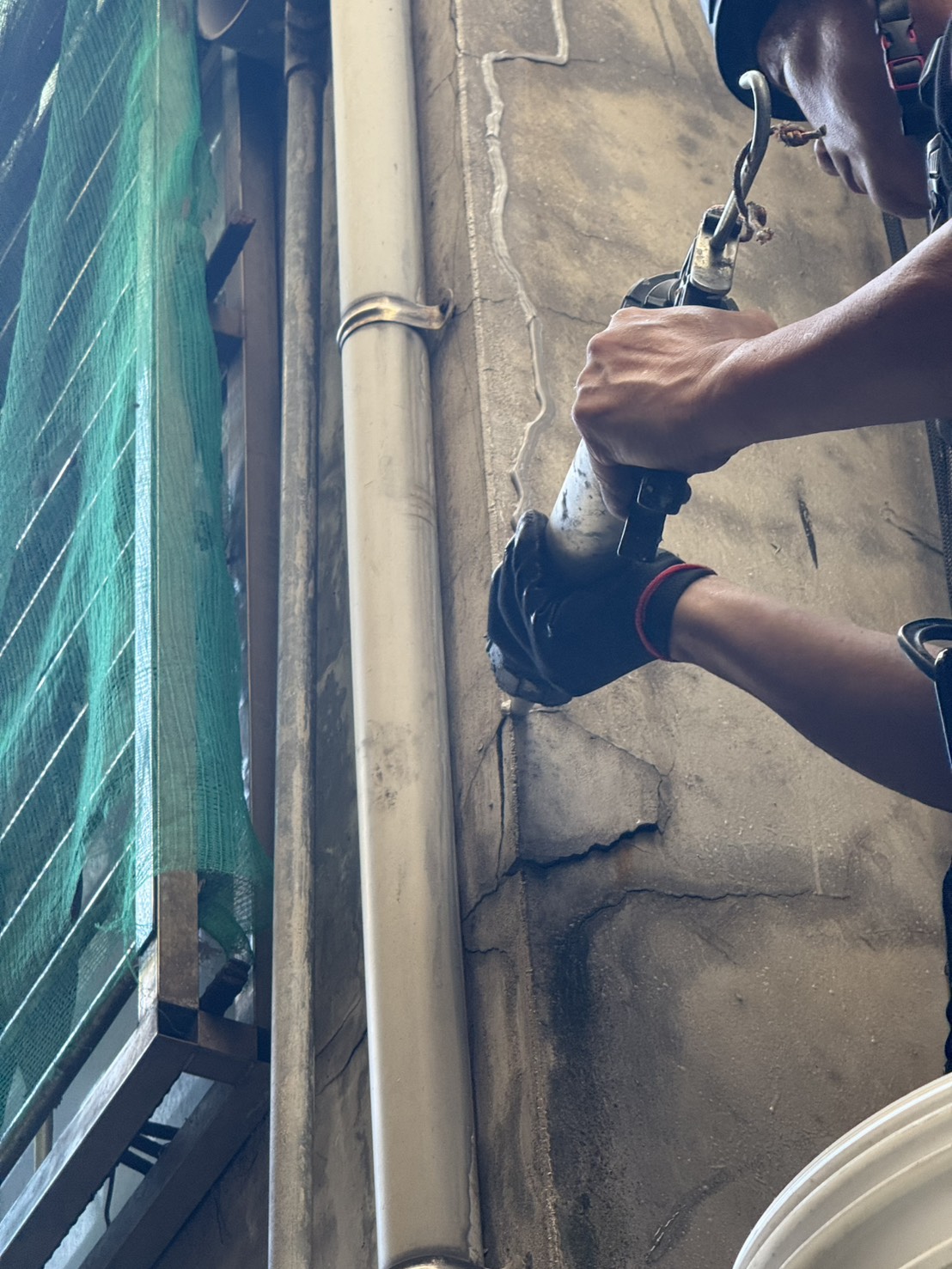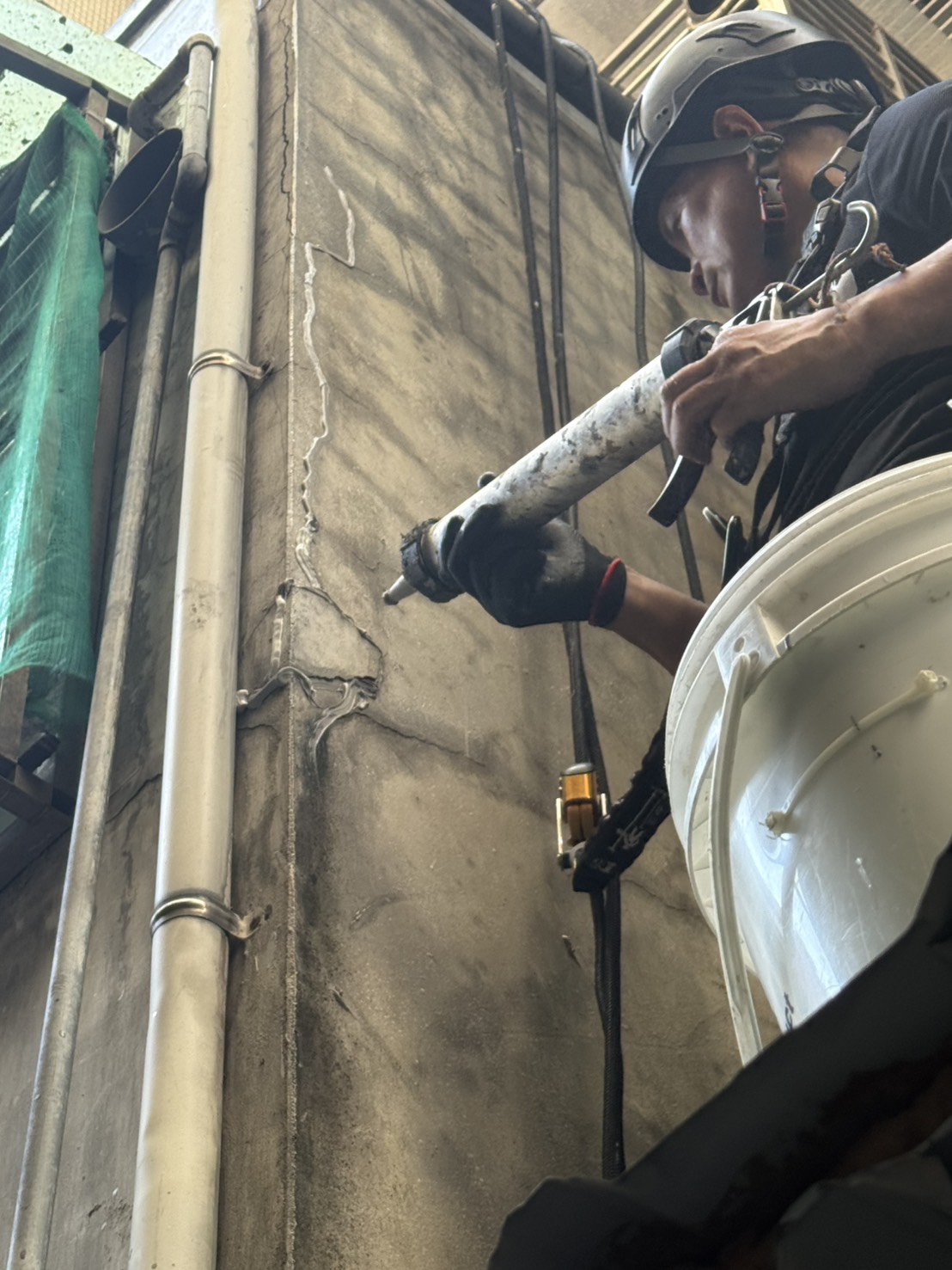 屋主多次嘗試自行補修卻無法徹底改善,最後委託合發防水工程行進行完整的外牆矽利康修補與防水漆更新作業。合發防水工程團隊在施工前仔細勘查外牆,標示所有裂縫與滲水點後,先清除舊有矽利康與鬆動漆層,確保新材能緊密附著。接著,針對窗框四周及牆面伸縮縫,以耐候型中性矽利康重新填縫封邊,強化整體密封性。完成縫隙修補後,再以高彈性抗UV防水漆分層塗佈,依序施作底漆、主體層與面漆,每一層都均勻覆蓋並特別加強轉角與接縫區域,以確保防水層連續完整。