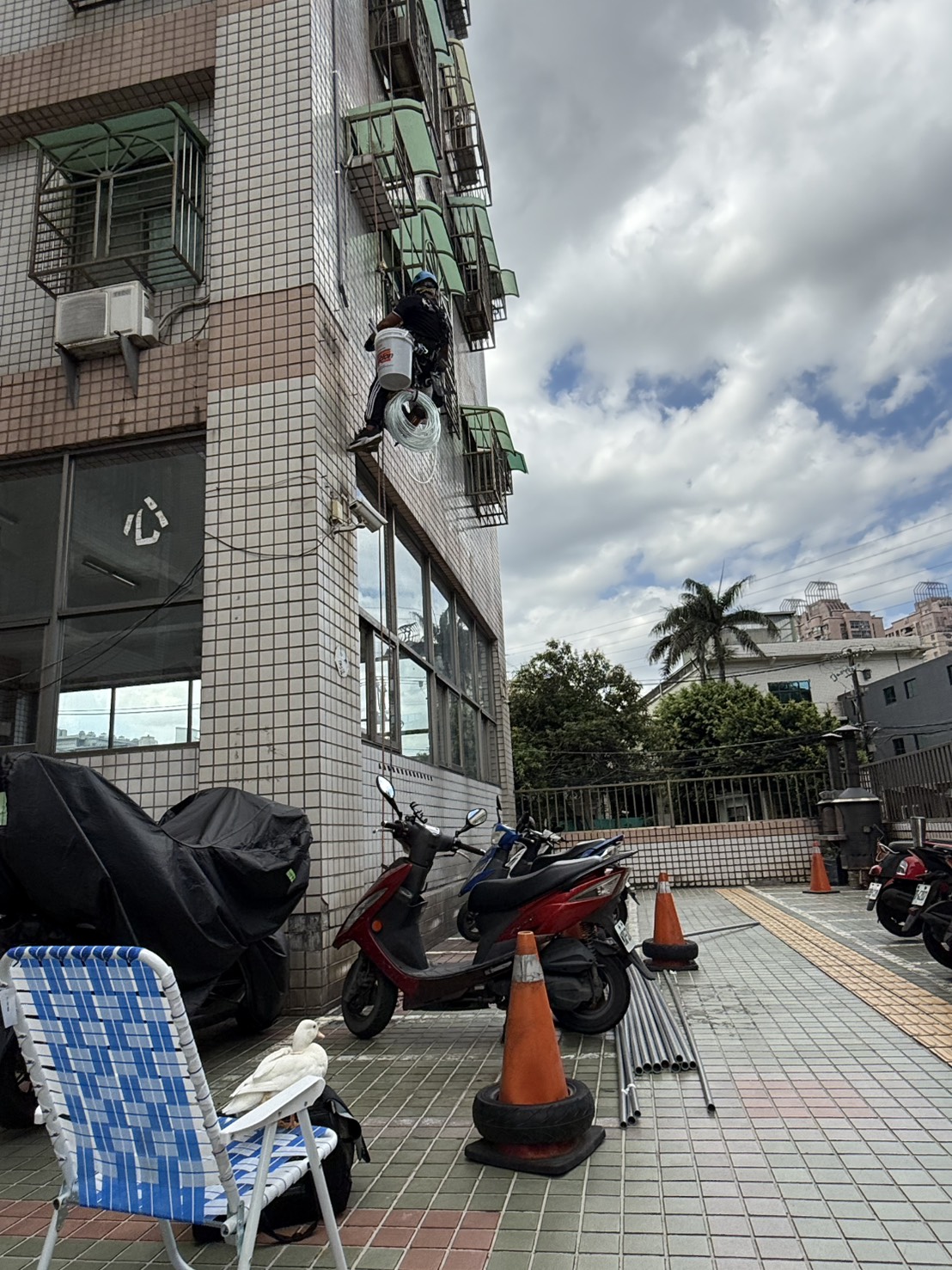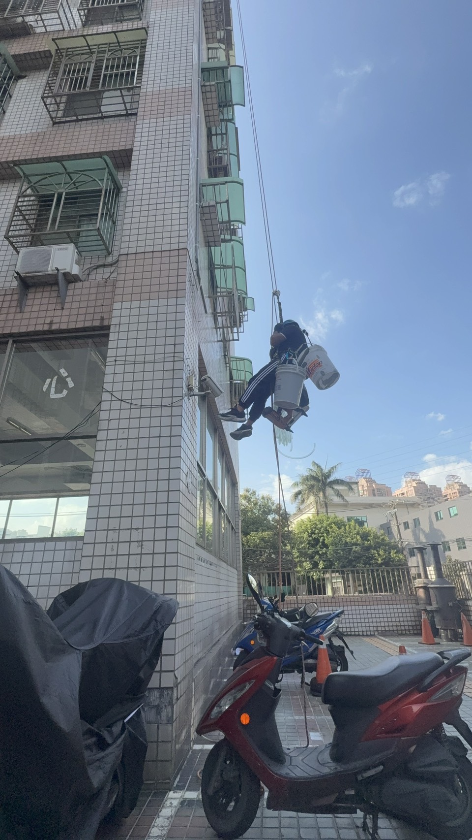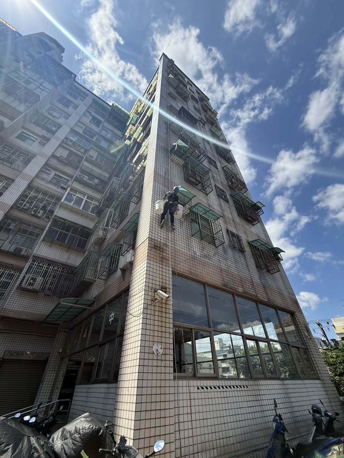 此外,在窗框周邊、牆面接縫、管線穿牆處等細部位置,特別加強防水處理,避免成為日後滲水的弱點。整體施工完成後,外牆將形成一道具備防水、防滲、抗紫外線及耐候性的保護層,不僅有效阻絕雨水滲入,也能延長建築物使用年限,同時提升外觀整潔與質感。