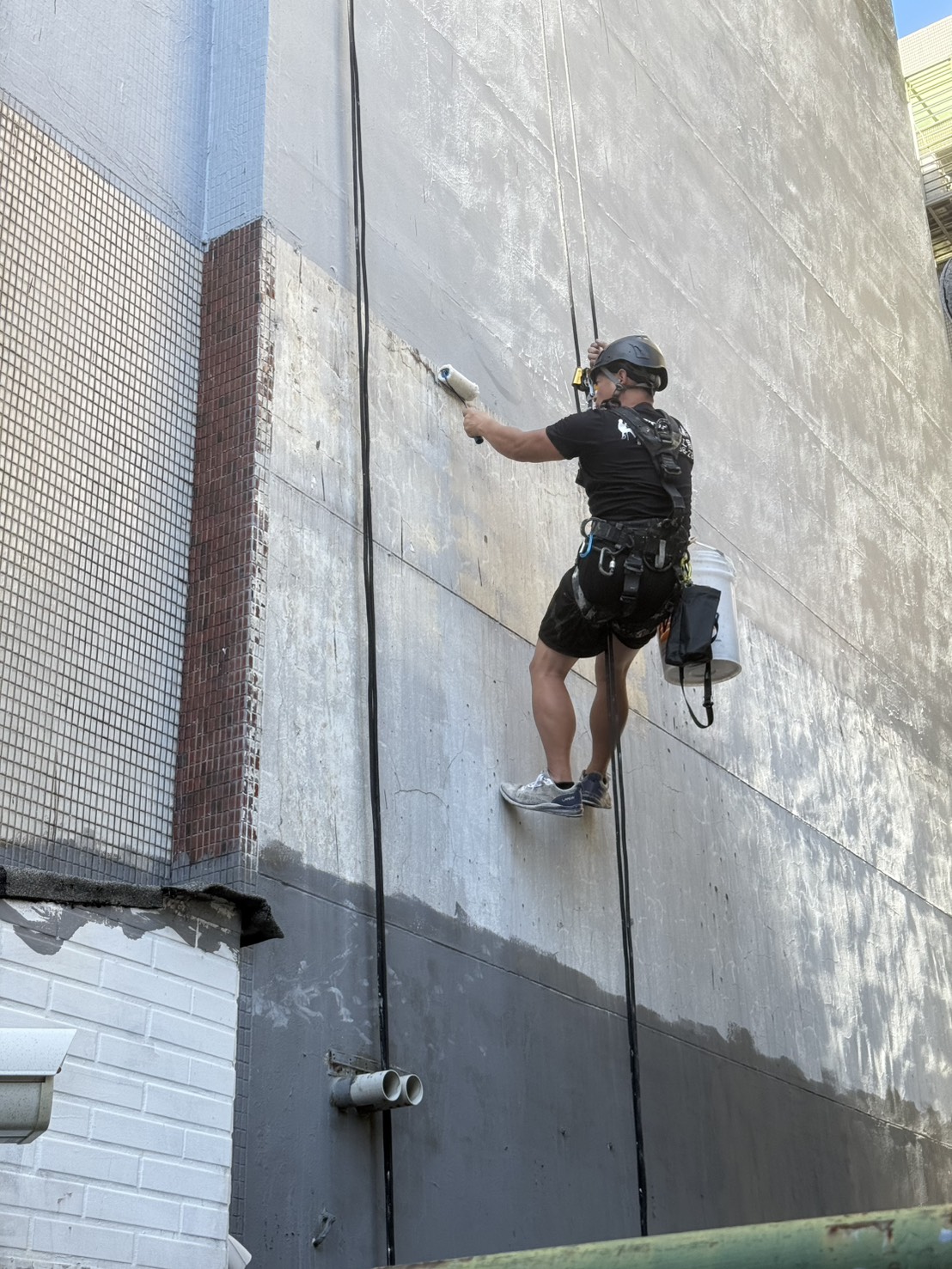 整個過程中,團隊嚴格控制塗料厚度與乾燥時間,確保防水層完整成膜。施工區域也同步進行窗框矽利康檢查與補強,避免邊角滲水。