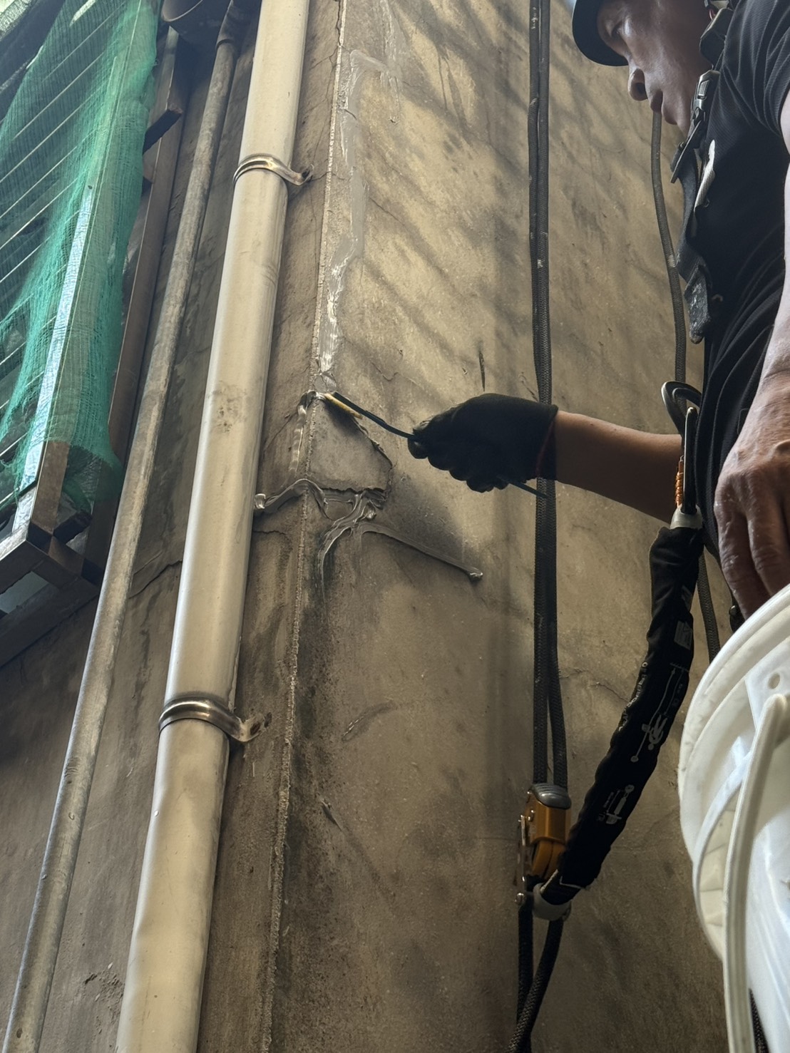 屋主多次嘗試自行補修卻無法徹底改善,最後委託合發防水工程行進行完整的外牆矽利康修補與防水漆更新作業。合發防水工程團隊在施工前仔細勘查外牆,標示所有裂縫與滲水點後,先清除舊有矽利康與鬆動漆層,確保新材能緊密附著。接著,針對窗框四周及牆面伸縮縫,以耐候型中性矽利康重新填縫封邊,強化整體密封性。完成縫隙修補後,再以高彈性抗UV防水漆分層塗佈,依序施作底漆、主體層與面漆,每一層都均勻覆蓋並特別加強轉角與接縫區域,以確保防水層連續完整。
