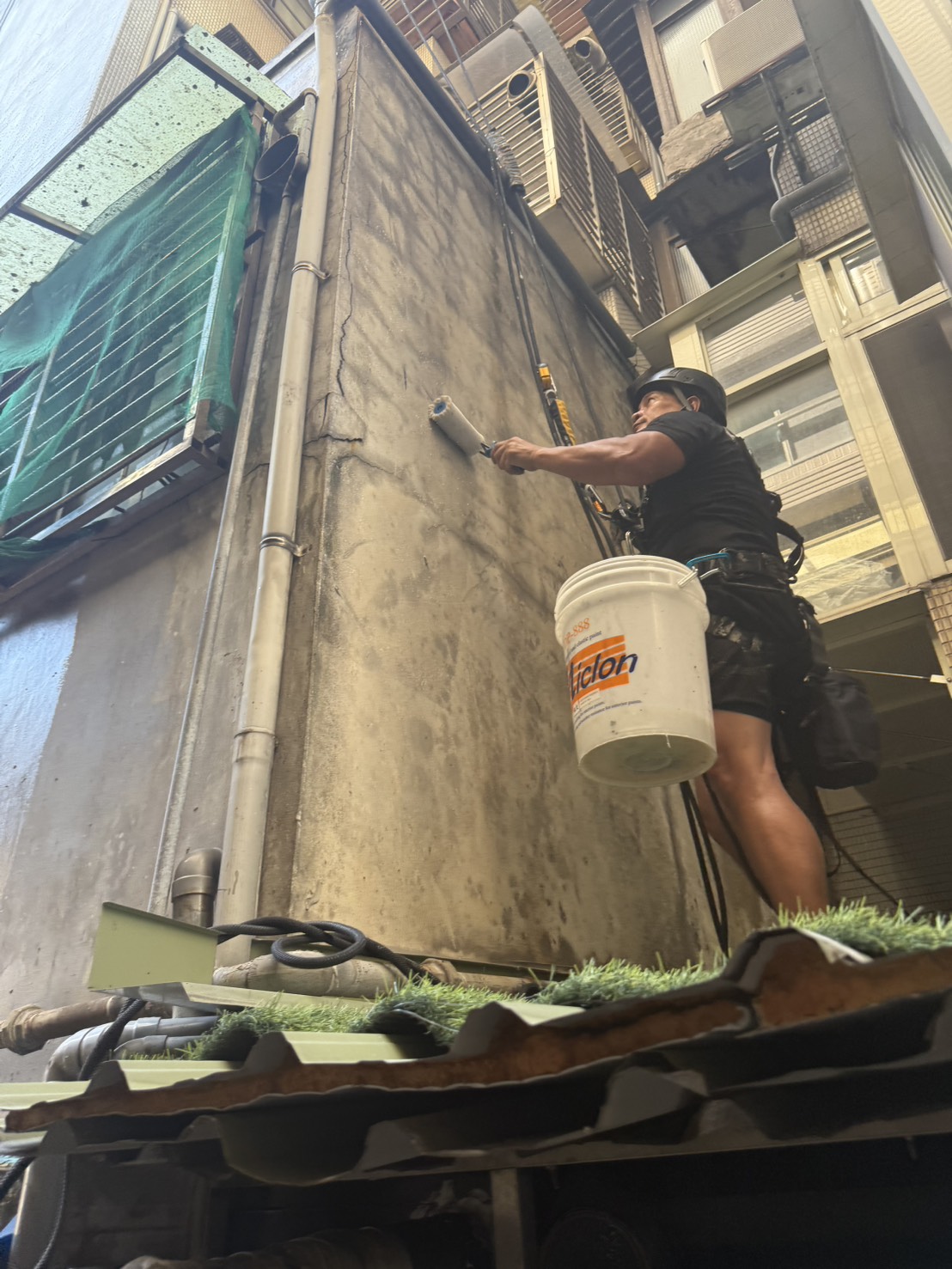 整個施工過程中,防水工程師傅嚴格控制氣候條件,避免在潮濕或下雨天作業,確保塗料能完全成膜並發揮防水效果。完工後,外牆煥然一新,色澤亮麗且表面平整,經過放水測試與連續降雨驗證,再無滲水情形。屋主對成果十分滿意,不僅外觀重現新貌,也徹底解決了多年來的漏水與壁癌問題,讓這棟老公寓重新展現安全與舒適的居住品質。
