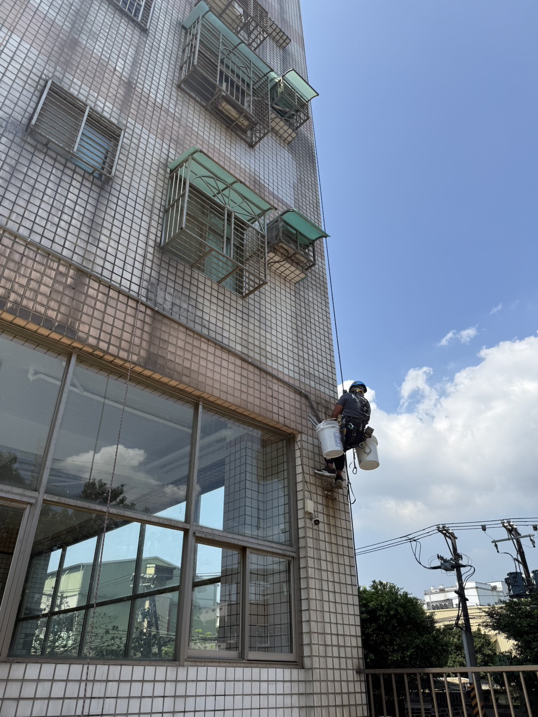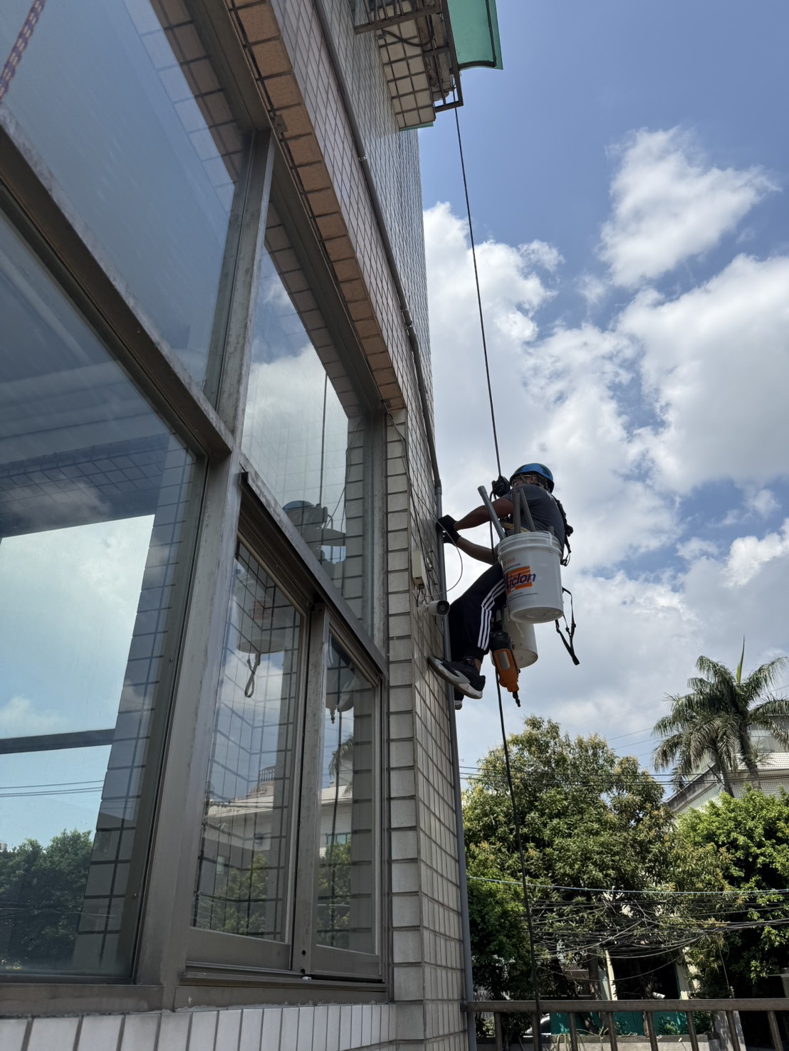此外,在窗框周邊、牆面接縫、管線穿牆處等細部位置,特別加強防水處理,避免成為日後滲水的弱點。整體施工完成後,外牆將形成一道具備防水、防滲、抗紫外線及耐候性的保護層,不僅有效阻絕雨水滲入,也能延長建築物使用年限,同時提升外觀整潔與質感。